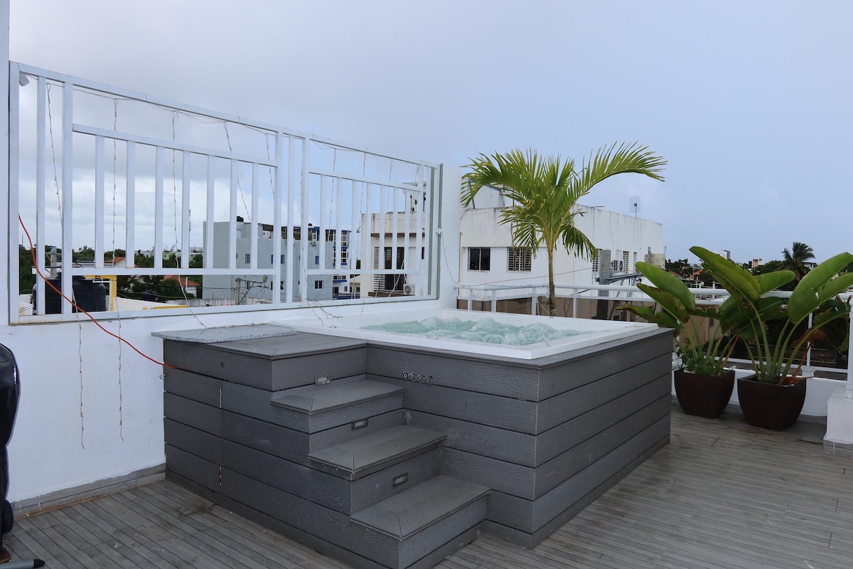 Apartemen ini terletak di jantung kota, di mana Anda akan memiliki segalanya beberapa menit jauhnya. Tempat ini memiliki 2 kamar tidur, masing - masing dengan kamar mandi pribadi, setengah kamar mandi di ruang tamu dan dapur lengkap. parkir. 3 menit dari Malecón dan Ibero - American Park, dan hanya 1 blok dari supermarket, restoran seperti Pizza Hut, KFS MCDONALD Papa John's, Wendy's, Jade, apotek gym, Anda akan berjarak 5 menit berjalan kaki dari Universitas UASD dan 10 menit berkendara dari Zona Kolonial.
