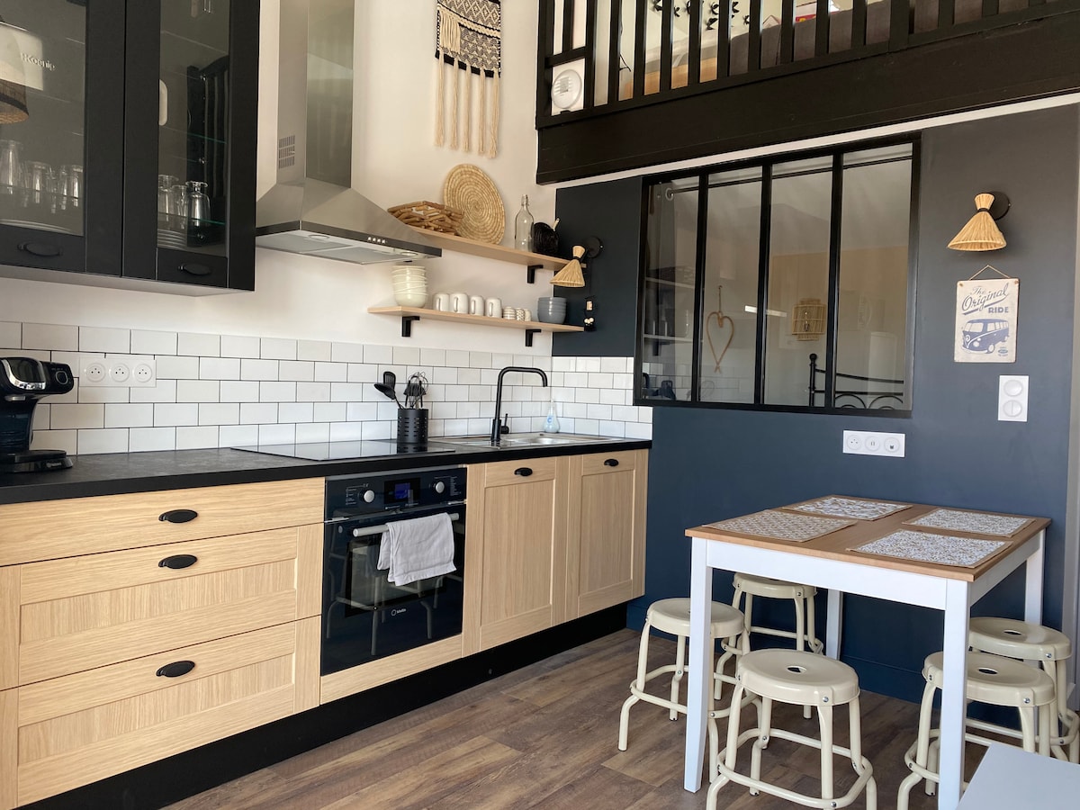 100 m dari pantai, akomodasi seluas 85 m² yang terang ini benar - benar direnovasi oleh seorang arsitek, berlokasi ideal di pusat kota Lacanau Océan. Apartemen yang didekorasi dengan sangat hati - hati ini memiliki 2 kamar tidur, 2 kamar mandi dan memiliki 2 tempat tidur dan tempat tidur sofa (hingga 5 orang). Tempat ini ideal untuk keluarga atau sekelompok teman. Wi - Fi, Netflix, tempat parkir, kipas angin.. Semuanya ada, anda akan merasa seperti di rumah di sana!
