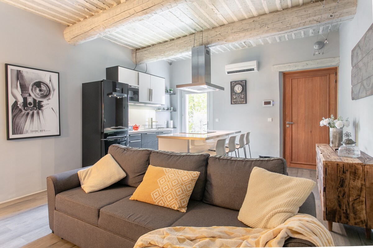 "La Maison aux Oliviers" adalah rumah pertanian kecil yang menawan seluas 90 m2, ber - AC, independen, dan berlokasi di kebun zaitun tua, tenang di taman lanskap yang menawarkan kolam renang pribadi yang indah dan aman. Tenda lebarnya menawarkan kesempatan untuk hidup di luar ruangan yang terlindung dari matahari dan angin (mistral). Dekat dengan pusat bersejarah, pasar lokal dan toko - toko (berjalan kaki), dilengkapi dengan sempurna untuk bekerja jarak jauh (serat berkecepatan tinggi)