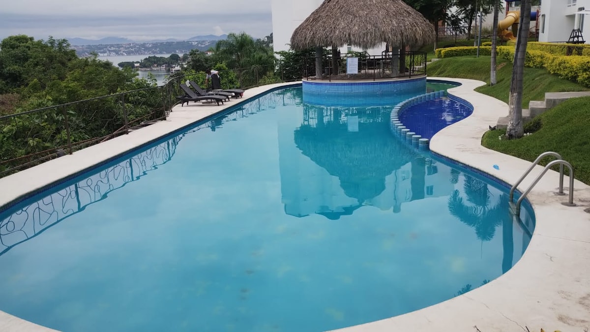 Apartemen Coquette View 🌅✨ Nikmati pemandangan terbaik Tequesquitengo! 🏝️ Apartemen modern untuk 6 orang (2 kamar tidur, 2 dan 1 tempat tidur double ✅ Semua yang terbaik: Teras panorama pribadi yang indah dengan pemandangan danau penuh. 📸 🏝️ Akses ke pantai Playa Coqueta (dengan konsumsi minimum), tempat Anda bisa menikmati: 🏊♂️ Kolam renang dan akses langsung ke danau 🍴 Restoran dengan makanan lezat. 🚤 Penyewaan perahu dan peralatan bahari. 🕒 Check-in pukul 12.00 🕒 Check-out pukul 17.00 🏢 Lantai 4 (akses tangga)