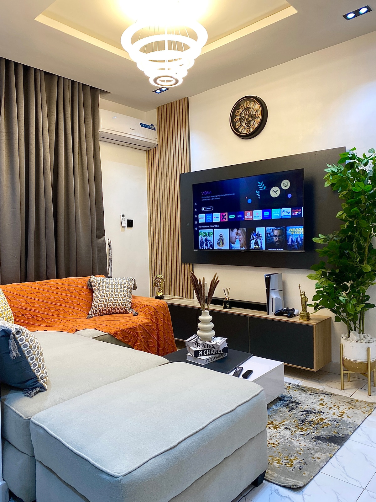 Tempat unik ini memiliki gaya tersendiri. Lokasinya tepat di seberang stasiun Kereta Mobolaji Johnson. Kurang dari 10 menit berjalan kaki ke bioskop Ozone. Banyak pilihan untuk restoran dan supermarket. Koneksi mudah ke jembatan daratan ke -3. Apartemen berlayanan lengkap dengan listrik biasa, keamanan berseragam, kamar kecil pengunjung, AC, internet Hi speed, smart tv dengan Netflix, layanan pemeliharaan rumah, laundry di apartemen, smart lock. Terakhir, pemandangan menakjubkan dari kamar Anda dan bagian atas gedung