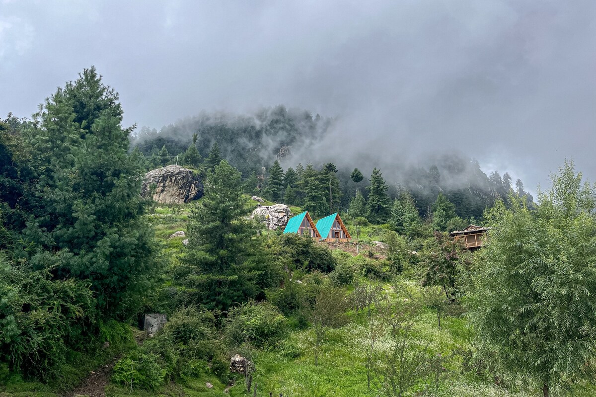 Ini adalah kabin berbentuk A di dekat kastil naggar. Yaitu 21 Km sebelum Manali. Kabin adalah tempat yang sempurna untuk Keluarga, pasangan, dan rombongan. Tempat ini berada di tengah - tengah pohon pinus dan kebun apel.