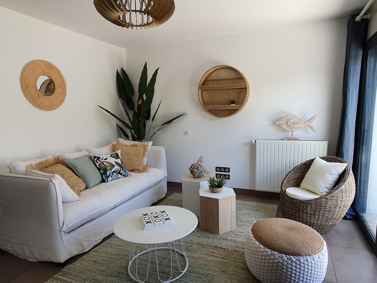 Akomodasi independen yang bersebelahan dengan rumah kami dengan pintu masuk pribadi. Lokasi istimewa 100 m dari pantai La Faute sur Mer yang sangat bagus. Apartemen T2 seluas 22 m2 dengan dapur kecil, sofa, dan TV; 1 kamar tidur dengan tempat tidur double pada tahun 160 X 190, dengan kemungkinan memisahkan tempat tidur (sesuai permintaan); kamar mandi dengan pancuran, wastafel, dan toilet. Teras dengan meja taman dan kursi. Seprai dan handuk disediakan. Termasuk wifi. Pada bulan Juli dan Agustus, minimum 7 malam dari Sabtu hingga Sabtu.
