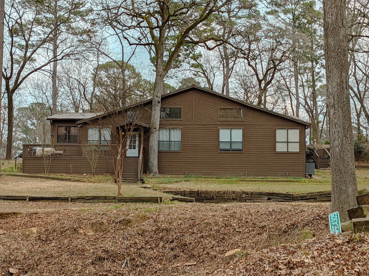 Rumah A-frame teduh dengan pemandangan matahari terbit/bulan terbit. Pondok liburan yang bagus untuk beristirahat, bersantai & memancing. Dermaga, dek terbuka, dek tertutup. Parkir tertutup, jalan masuk beraspal. Akses ke danau untuk perahu. HOTax Wood County & biaya kebersihan disertakan dalam harga per malam. Ltd. Stasiun TV. Pemutar DVD. Dekat Winnsboro yang semarak untuk berbelanja, Farmers Market Sabtu pagi, bersantap, kopi, truk makanan, Finders Keepers, Winnsboro Center for the Arts, Autumn Trails, Art & Wine Festival, Book Fair, Bloom, Rodeo.