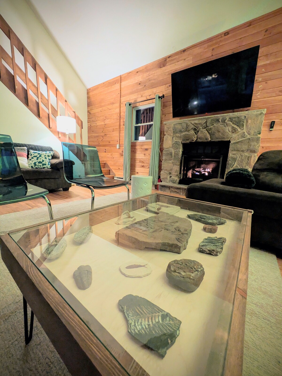 Mengakomodasi 9 orang (3 tidur di ruang tamu). Komunitas di lengkapi Kolam Renang, taman bermain, dan lapangan tenis. Dapur lengkap, semua peralatan makan. Bar vintage, ruang keluarga terbuka dengan perapian KAYU BAKAR. Smart TV layar datar besar. Ruang tamu mengarah ke luar ke area makan TERPENCIL yang menghadap ke hutan. Area luar ruangan menampilkan pemanggang gas BBQ, tempat api, dan hammock. Tidak boleh membawa hewan peliharaan. Tidak Ada AC Hanya Kipas Langit - Langit