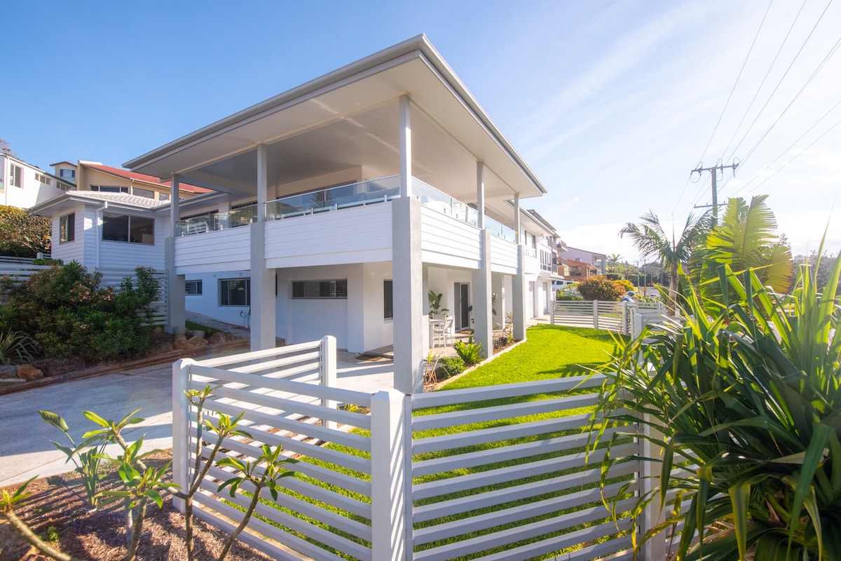 Funky renovated 60s style beachhouse This is a beautiful, bright, funky and freshly renovated beach house with loads of indoor and outdoor relaxing spaces & BBQ. We have a modern gourmet kitchen and luxurious bathroom. The interior is vibrant yet cozy and inviting, with a 55" smart TV and relaxing couch. The house is a short walk from the beach (80m) and lake (250m), and only 15 minutes drive to the centre of Port Macquarie. The house is not suitable for young children due to stair design.