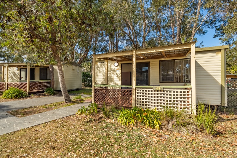 For the family or couple on a budget, our studio cabins are compact and functional for an affordable holiday. Featuring an open plan studio layout with a queen sized bed and bunk bed, it is the perfect configuration for two adults and two children. Each cabin has as kitchenette with stove and microwave so you will be able to feed the family with ease on the private veranda.