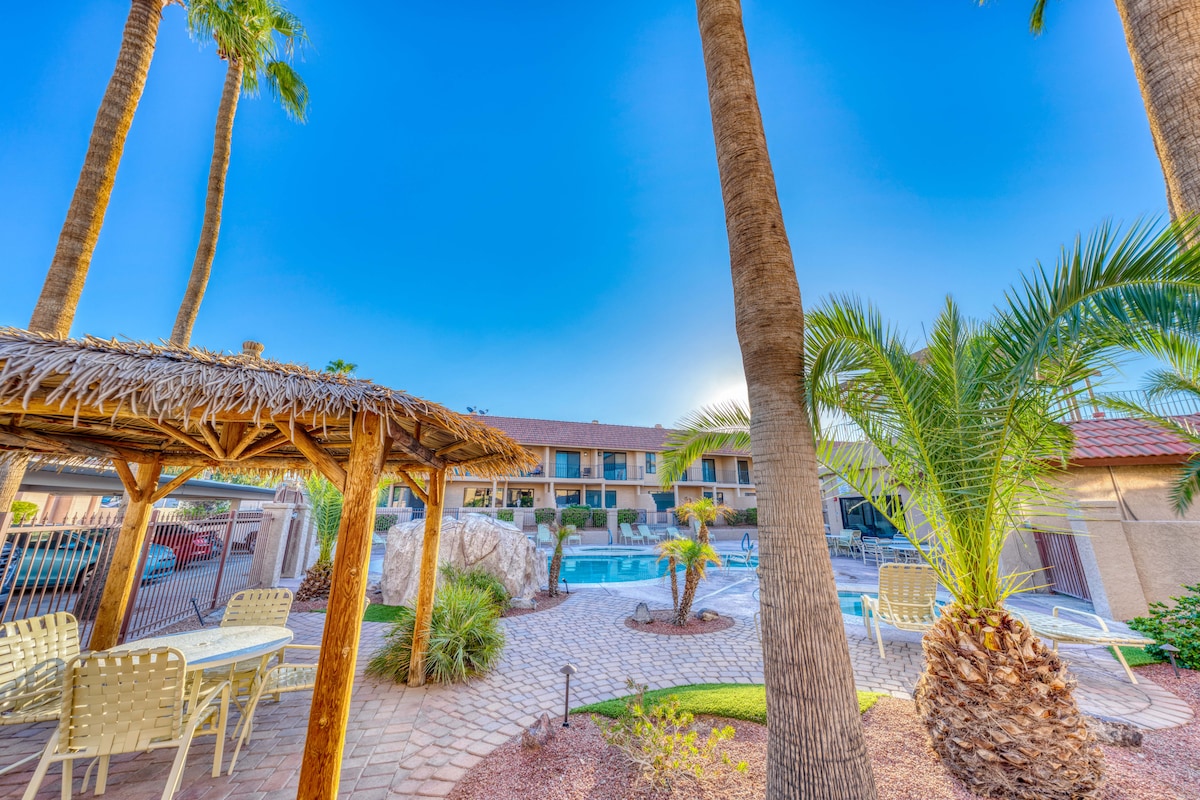 Ruang dalam ruangan pribadi seluas 780 kaki persegi; tempat menginap di Havasu. Sempurna untuk liburan romantis atau relaksasi yang tenang! Tempat tidur King yang nyaman di kamar tidur, tempat tidur murphy berukuran penuh di ruang tamu, dapur, area makan, TV layar datar, WIFI cepat, AC, pancuran ubin. Patio luar/kolam renang/bak mandi air panas bersama dan menaruh hijau. - Kolam renang BERPEMANAS dan Bak Mandi Air Panas - Mini menempatkan hijau untuk bersenang - senang dan tertawa. Kami memiliki klub dan bola golf. - Banyak area duduk di luar ruangan yang nyaman.
