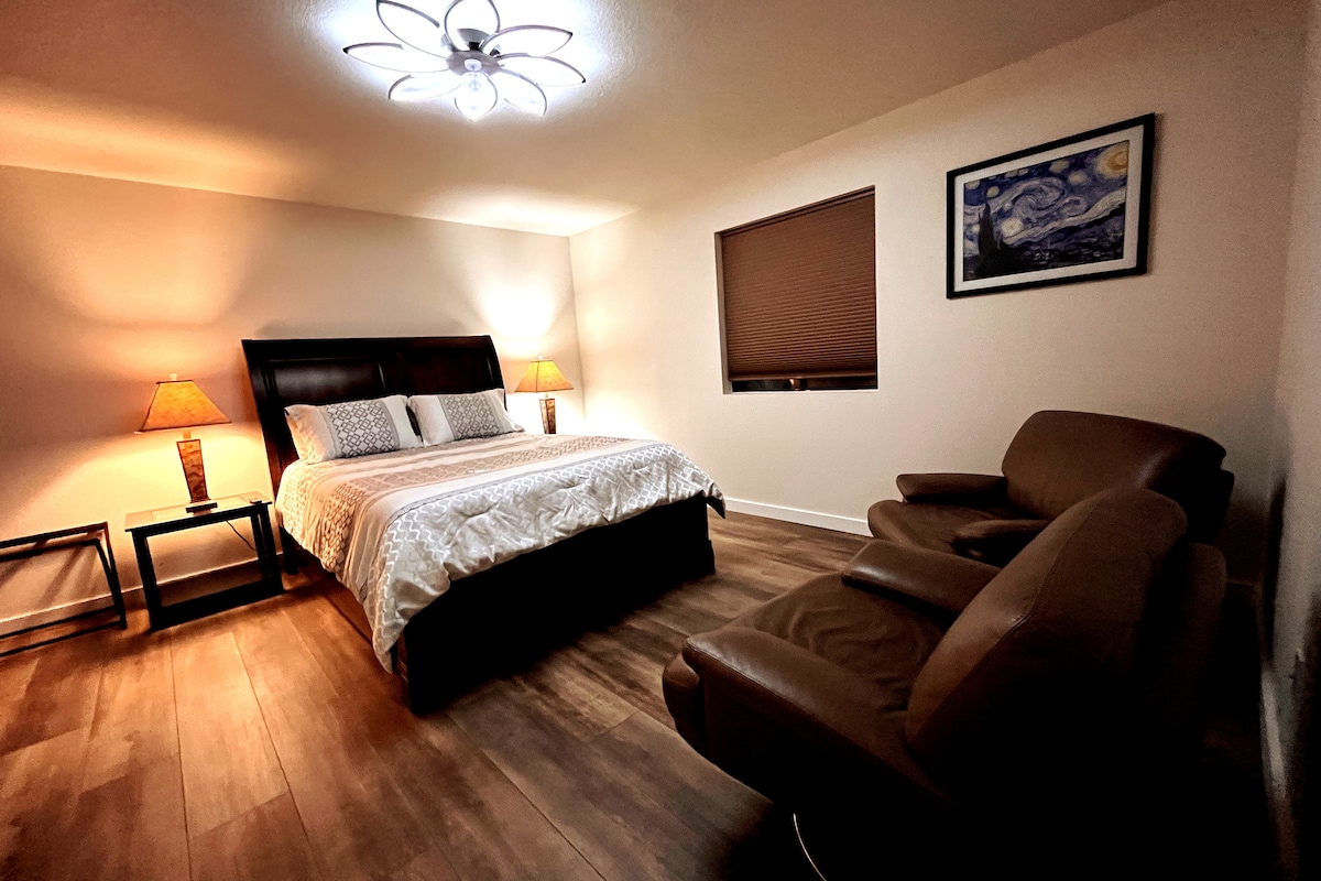 Lokasi Northside yang Super imut! Suite tamu seluas 430 kaki persegi ini bisa buat tidur hingga empat orang. Tempat ini terdiri dari dapur /area tamu dan satu kamar tidur king dengan kamar mandi. Ruang tamu bisa menampung hingga 2 tamu di sofa tidur tarik. Datanglah dan pergilah sesuka Anda dengan pintu masuk keypad pribadi. Halaman berdinding pribadi dengan kolam renang berkilau dan area teras yang teduh. Nikmati masa inap santai selama akhir pekan atau lebih lama.
