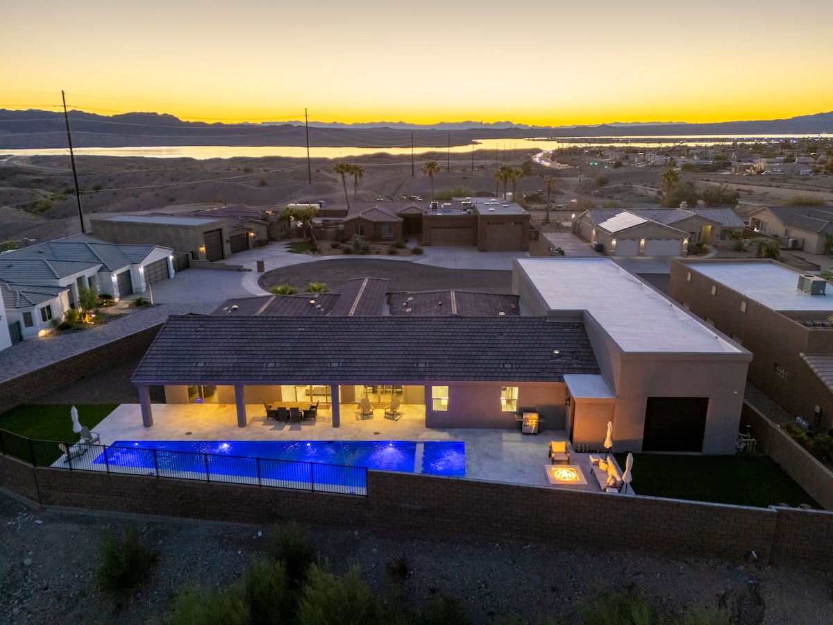 Bersantailah di tempat yang tenang dan bergaya ini. Nikmati waktu istirahat berkualitas di dekat banyak tempat wisata utama dan Danau Havasu yang indah. Ruang tamu terbuka dengan dapur lengkap, Netflix, tempat tidur yang nyaman, kolam renang/spa air asin yang indah, perapian, dan pemanggang built - in untuk ruang tamu luar ruangan yang menakjubkan. Pemandangan danau Peekaboo dari halaman belakang. Kami selalu melakukan perbaikan untuk menjadikan masa menginap Anda sebaik mungkin. Sampai bertemu. Jadilah tamu kami dan izinkan kami memberi Anda ketenangan!