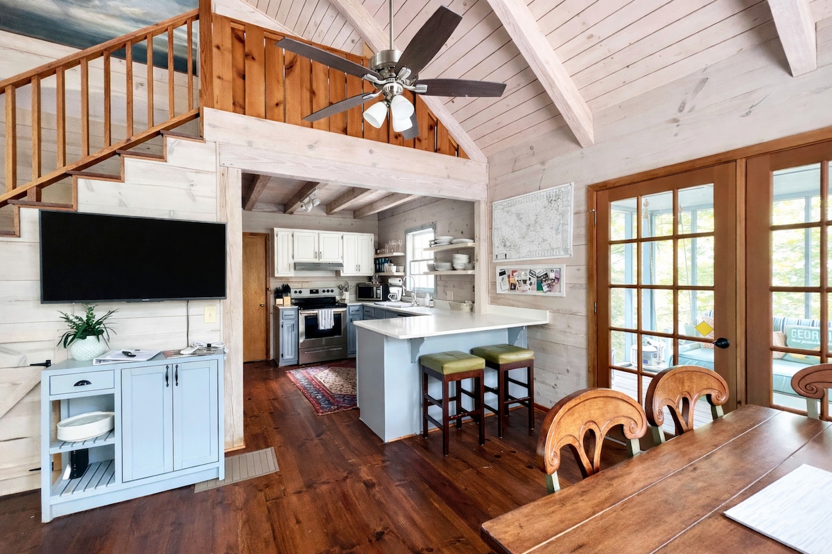 Nikmati pemandangan danau dan pegunungan di oasis yang diperbarui ini di antara pepohonan. Baik Anda mencari petualangan luar ruangan atau liburan yang meremajakan, kami memiliki semuanya! Terletak di danau seluas lima hektar, nikmati dermaga pribadi dan gunakan dua papan dayung dan kano kami. Setelah seharian mendaki, bersantai di bak mandi air panas dan sauna. Banyak ruang untuk berkumpul baik di dalam maupun di luar ruangan, kami harap Anda akan menikmati semua fasilitas modern sambil terhubung kembali dengan alam. Hanya 12 menit ke pusat kota Ellijay!