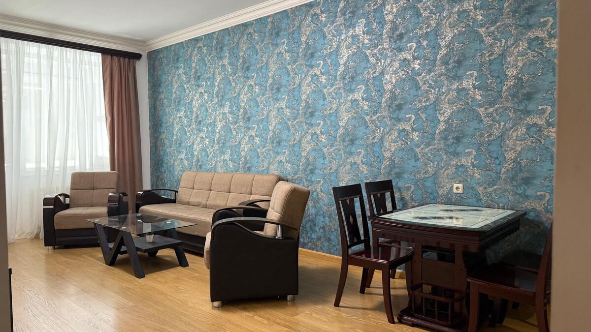 Temukan apartemen kami yang direnovasi dengan indah yang terletak di lingkungan perumahan yang tenang. Nikmati ketenangan area rekreasi hijau, menawarkan pemandangan ibu kota, Gunung Aragats yang menakjubkan, dan taman air di dekatnya. Pusat kota hanya berjarak 4 -5 km berkendara. Selain itu, lokasi strategis kami memberi Anda dekat dengan Megamall yang semarak, kebun binatang yang menawan, dan petualangan yang mendebarkan di taman air dan kompleks olahraga yang akan membuat Anda senang.