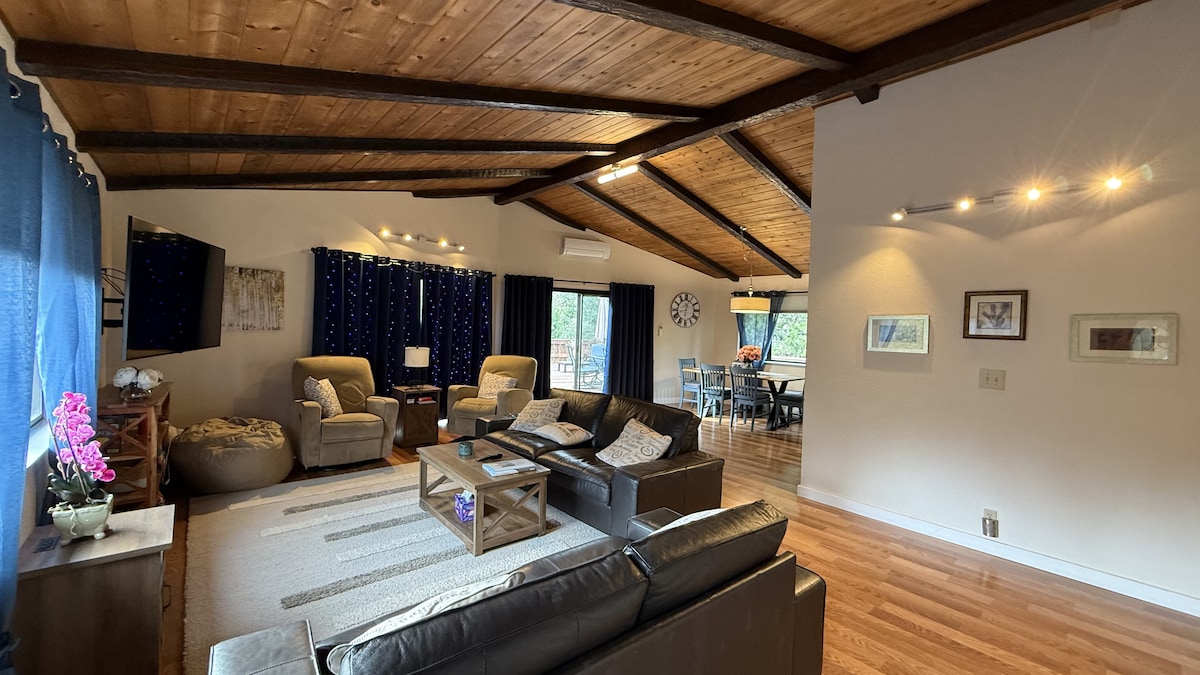 Setelah seharian berada di luar ruangan, bersantai di salah satu AirBnbs terbesar di Pine Mountain Lake. Keluarga & teman - teman Anda bisa tersebar di ruang tamu mewah seluas 4000 kaki persegi yang berisi kenyamanan modern yang diperlukan. Nikmati dua dek besar yang menghadap ke gulch / danau di bawahnya. Terletak di jalan masuk yang tenang jauh dari keramaian, Anda akan memiliki akses (250 langkah menuruni bukit yang lebih curam) ke dermaga pribadi di danau dengan kayak, jalur hiking terdekat, berenang, tenis, golf, memancing, dan perjalanan sehari - hari ke Yosemite.