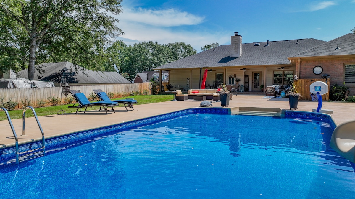 Bangun pagi dengan pemandangan danau yang menakjubkan di rumah liburan modern berbentuk A di Danau Tuscaloosa ini. Hanya 25 menit dari UA, ini adalah tempat sempurna untuk hari permainan, kelulusan, atau liburan keluarga. Nikmati dermaga pribadi, kayak, dek besar, lubang api, dan sauna. Di dalam: 2BR, 2BA, 2 tempat tidur sofa, dapur lengkap, ruang permainan, dan ruang tamu yang nyaman dengan jendela dari lantai ke langit-langit. Tidur 8 orang dengan nyaman, WiFi cepat, 2 TV besar, seprai mewah, dan banyak tempat parkir di jalan buntu yang tenang. Ditambah 10 menit ke toko kebutuhan sehari-hari dan restoran.