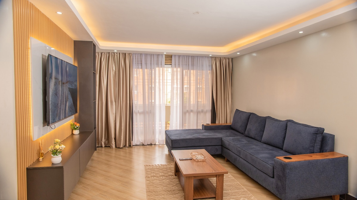 Experience the comfort of our spacious one-bedroom apartment, nestled within a luxurious new-build in Kampala. As our cherished family home during visits, this residence offers a personal touch to your stay. While the apartment features three bedrooms, guests will have exclusive access to the primary bedroom with en-suite, the remaining rooms will remain unoccupied, ensuring complete privacy. Enjoy breathtaking views and a suite of modern amenities designed for a memorable stay.