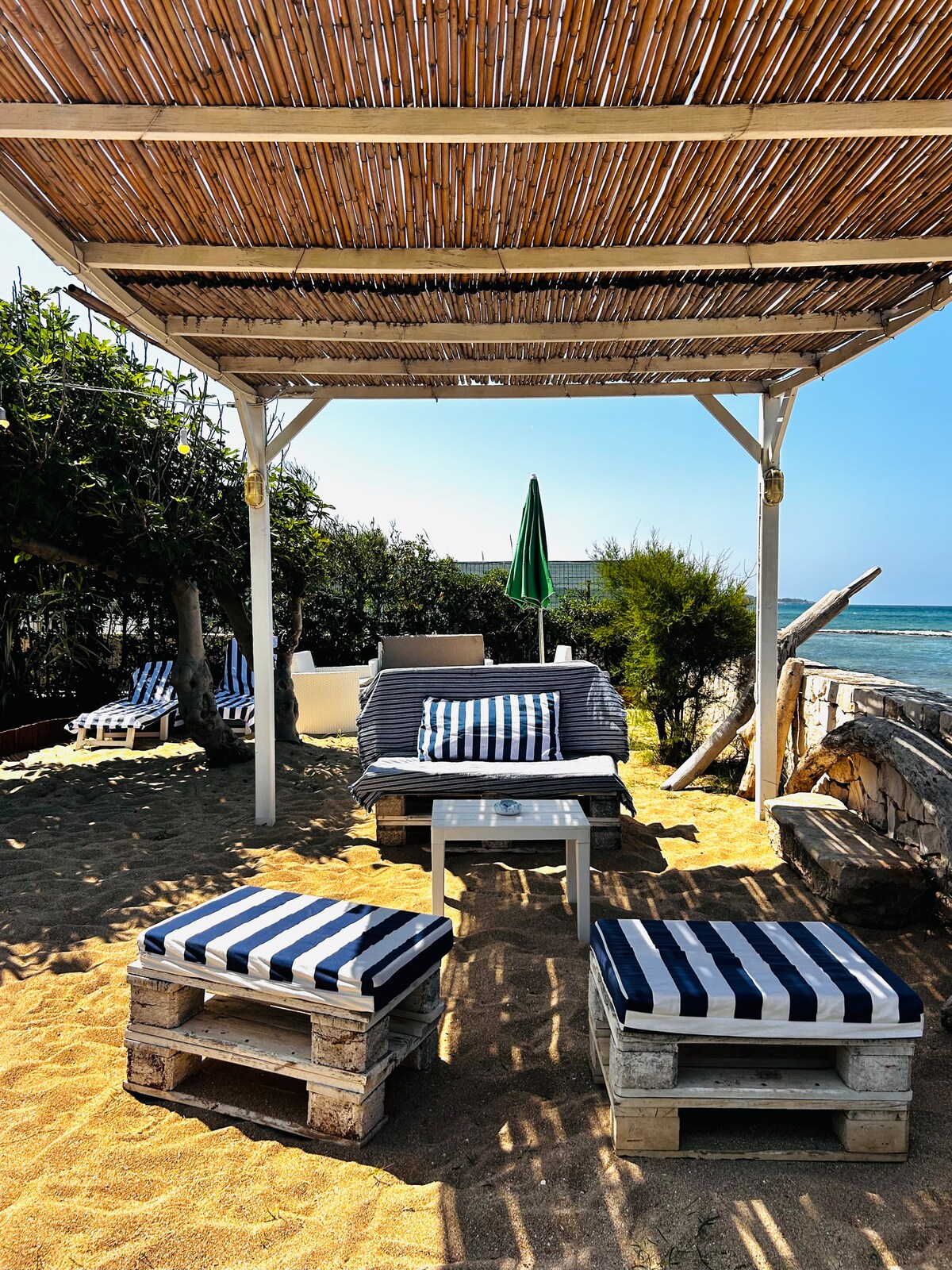 Apartemen beberapa langkah dari laut lengkap dengan segala kenyamanan termasuk parkir pribadi gratis. Apartemen ini memiliki kamar tidur dengan tempat tidur double, tempat tidur bertingkat, dan tempat tidur single. Apartemen ini juga memiliki dua kamar mandi dengan shower luar ruangan. Rumah ini berlokasi di kompleks dengan apartemen mini terdekat hanya dengan gerbang masuk utama. AC tersedia.