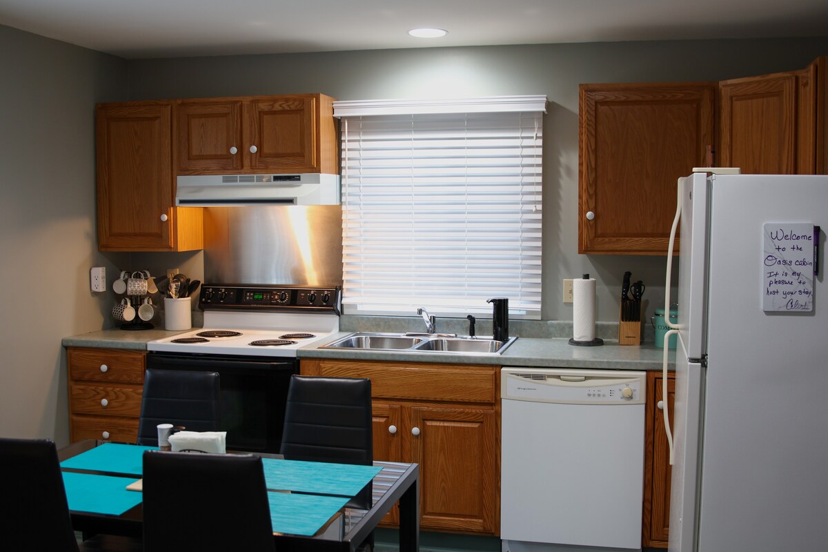 Guest House kami adalah kabin 400sf yang nyaman dan dekat dengan semuanya. Perabotan yang nyaman, ada tempat tidur queen di kamar tidur dan kamar mandi lengkap. Dapur kecil ini memiliki kompor dua tungku, kulkas kecil dengan lemari pendingin, wastafel, microwave, Keurig, dan peralatan kecil. Pemanggang di luar berdekatan dengan teras kecil. Kami berada tepat di Lamoille Rail Trail, 2 mil ke Long Trail, 4 mil ke Johnson, 8 mil ke Smugglers 'Notch. Dekat dengan ski yang luar biasa, mobil salju, lintas alam, bersepeda, dan berkano!