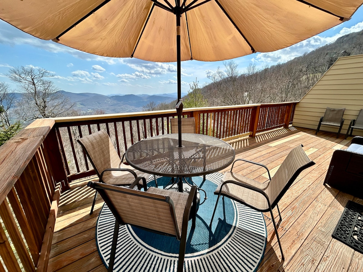Hickory Hide - A - Way - Tempat di mana Anda dapat memutuskan hubungan dengan pemandangan pegunungan yang menakjubkan yang terletak 400 kaki di atas tanah. Saatnya bersantai, terhubung kembali, memulihkan, dan menjelajah. Pulanglah ke Hickory - Hide - A - Way untuk menikmati liburan romantis, tempat peristirahatan yang damai, atau liburan yang santai. Beberapa menit dari kota pegunungan kuno Banner Elk, Blue Ridge Parkway yang terkenal, dan dekat dengan Pantai dan Sugar Mountain, chalet ini sangat cocok untuk menikmati semua yang ditawarkan High Country.