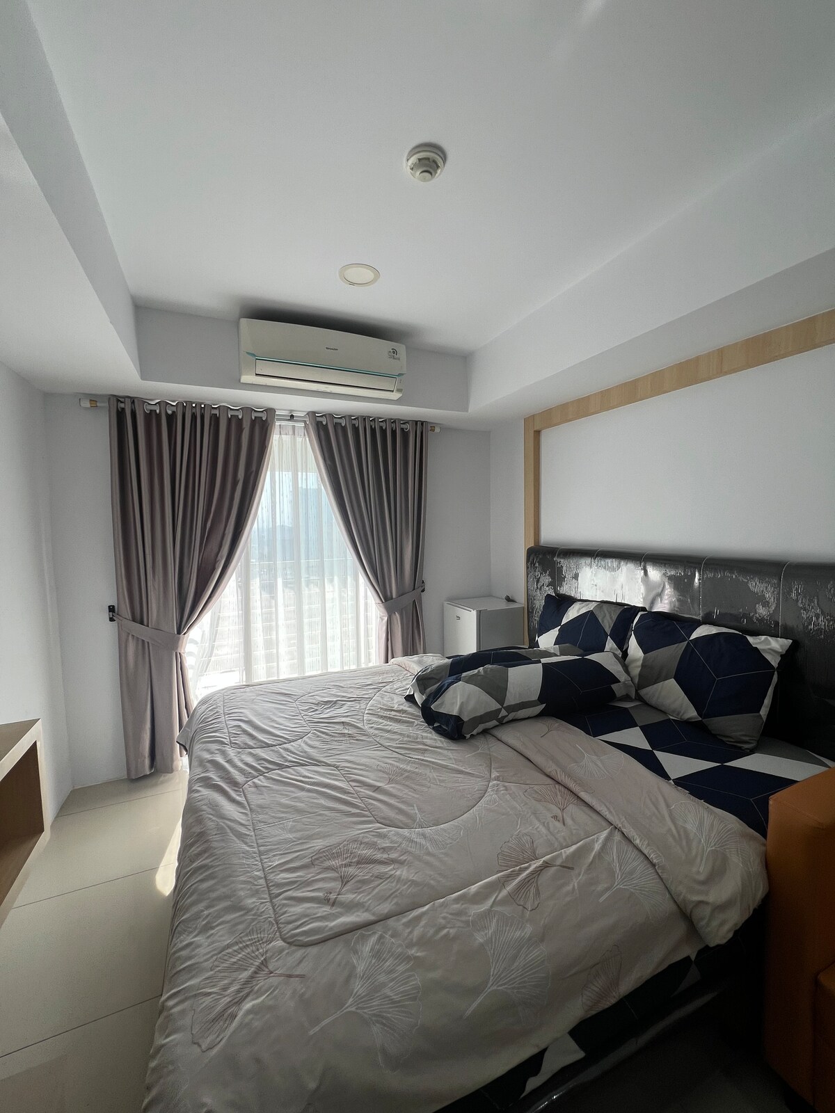 Lokasi APARTEMEN STRATEGIS dekat dengan pusat kota lengkap dengan AC, Wi - Fi gratis, dapur kecil, pemanas air, kolam renang dan fasilitas gym. Tempat yang sempurna untuk menginap single/couple. Kamar ini memiliki balkon sehingga Anda bisa melihat - lihat kota atau sekadar menikmati udara segar. Dekat dengan kebutuhan sehari - hari Anda; Restoran & Kafe, Pasar, Laundry, ATM Centre atau percetakan digital dalam jarak 500 m saja. Kamar siap untuk masa inap jangka pendek atau jangka panjang dengan diskon besar (>28 hari)