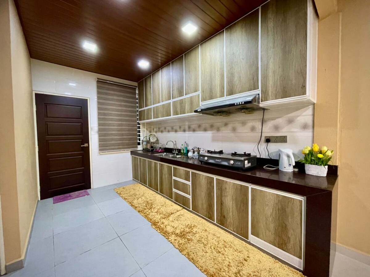 2Unit terpasang rumah, sedikit lebih jauh dari jalan untuk ketenangan batin Fasilitas - Kamar dengan AC untuk masing - masing *3 kamar - Pemanas air untuk setiap Kamar Mandi *2 - TV layar datar dengan NJoi Channel - Sofa - Setrika & Meja Setrika - Kulkas - Peralatan dapur - Handuk & perlengkapan mandi dasar - Telekung & sejadah - Bantal tambahan + Selimut - Tempat parkir Bersantai bersama seluruh keluarga di tempat menginap yang damai ini. Sangat cocok untuk mereka yang menyukai ketenangan.