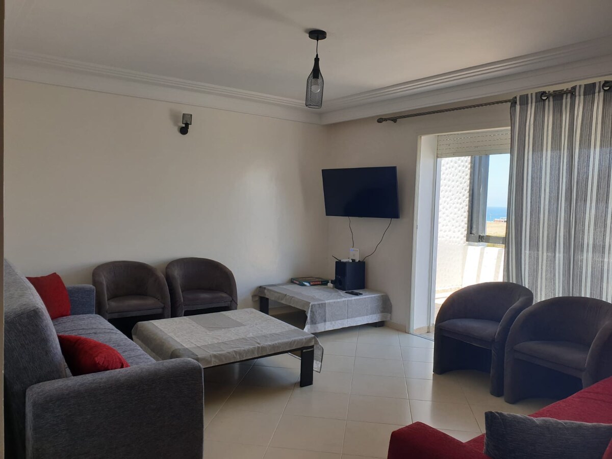 Nikmati apartemen modern dan luas yang indah dengan 1 kamar tidur (160 tempat tidur), 1 ruang tamu ber-AC dengan Wi-Fi, siapkan makanan Anda di 1 dapur lengkap dan nikmati di balkon dengan pemandangan panorama. Di tempat tinggal yang luar biasa, datang dan temukan 11 kolam renang dan lapangan tenis serta hiburan sehari - hari. Tidak ada kekurangan tempat wisata di Assilah: pantai, gym, Aquaparc Tempat sempurna bagi wisatawan yang mencari relaksasi dan petualangan