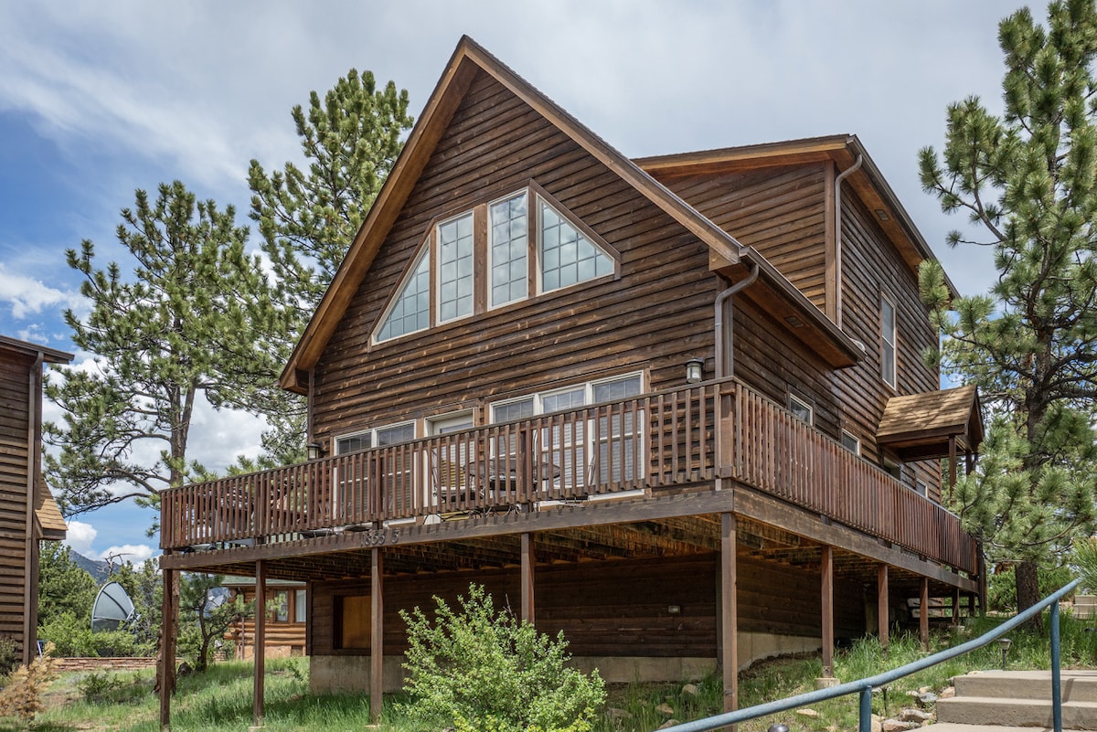 Live the mountain life! All season pet friendly home w/ high-speed internet on beautiful 2.5 acres w/ huge deck to enjoy outdoor grilling & arguably best views of Longs Peak in the Estes Park area (highest peak in Rocky Mountain Nat'l Park)! 4 miles from center of town activities & 7 miles from Nat'l Park entrance where premier hiking, fishing, horseback riding, & wildlife viewing abound (plus snowshoeing & skiing in winter)! Premier Host on other sites.