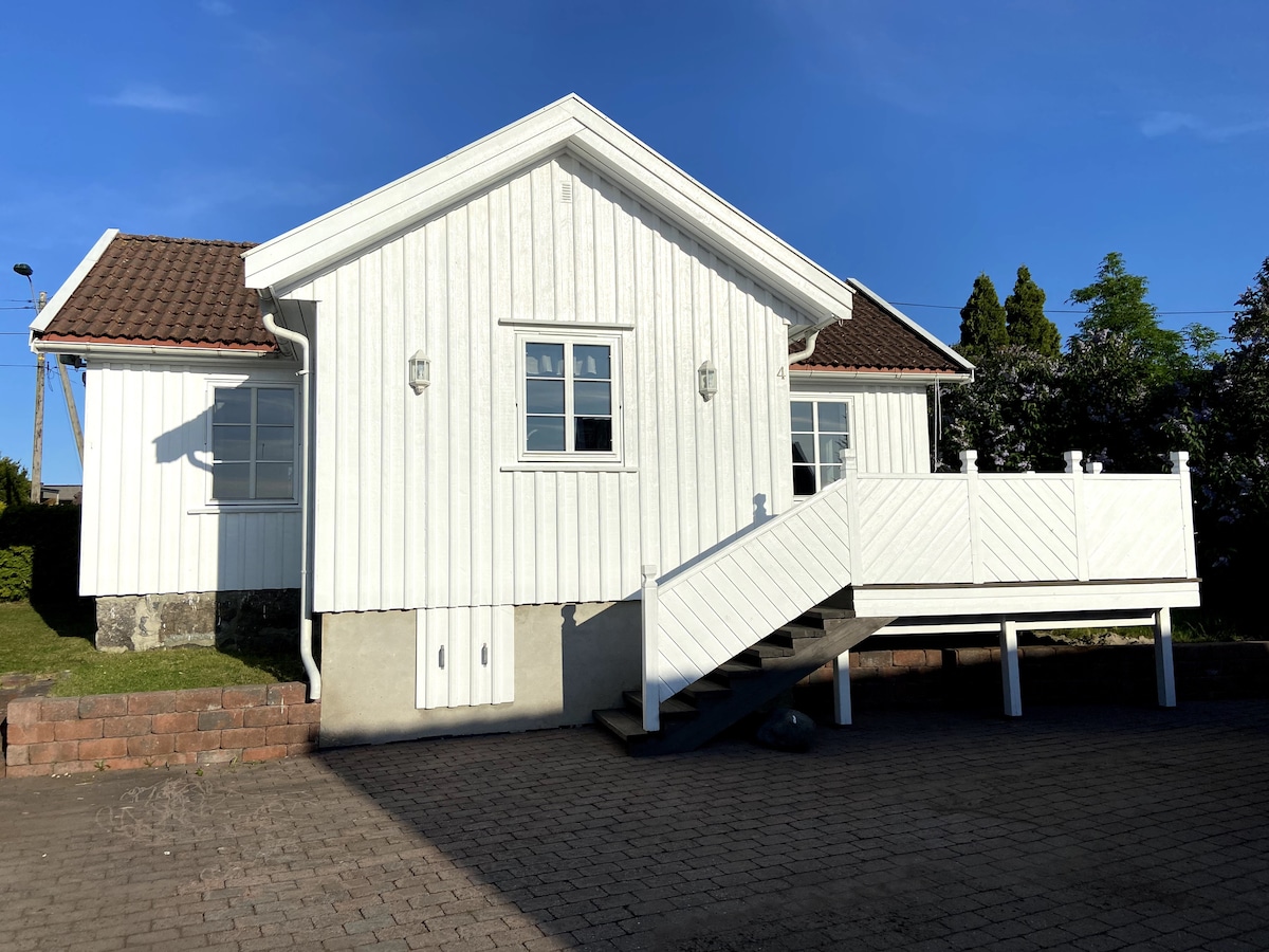Rumah tamu yang nyaman dekat dengan pusat kota. Suite dengan kamar mandi yang menarik, tempat tidur double mewah besar dengan selimut dan bantal baru dan perlengkapan tempat tidur putih halus yang memberikan nuansa hotel yang lezat. Area duduk dan TV dengan Netflix, HBO, Disney+ dll. Dilengkapi dengan mesin Nespresso, kulkas, microwave, dan ketel. Taman nyaman dengan area duduk dan barbekyu. 12 menit dari bandara Torp. 200 meter dengan bus. “Terima kasih banyak atas segalanya, ini adalah AirBNB terbaik kami di Norwegia” - Komentar tamu, November 2023