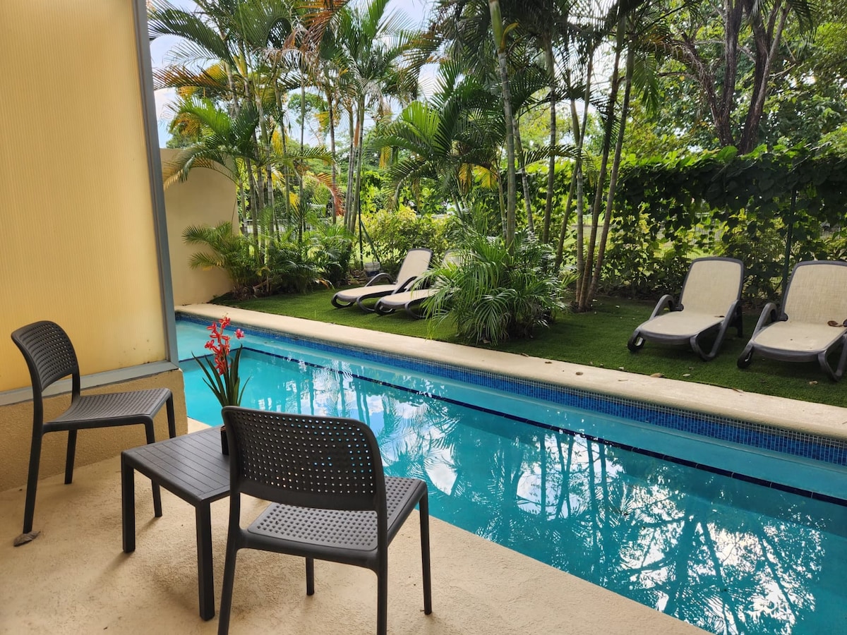 Nikmati masa inap unik di Colibri Suite, dengan kolam renang semi pribadi, di dalam kompleks golf dan pantai eksklusif di Coronado. Dilengkapi dengan tempat tidur king, tempat tidur sofa, TV, layanan kamar, Wi - Fi, dan kamar mandi pribadi, sangat cocok untuk bersantai. Tamu menikmati kolam renang, restoran, gym, spa (dengan janji temu), golf 18 lubang (khusus kereta berbayar), lapangan tenis dan pickleball, dan klub pantai pribadi. Ideal untuk liburan yang tenang atau liburan aktif.