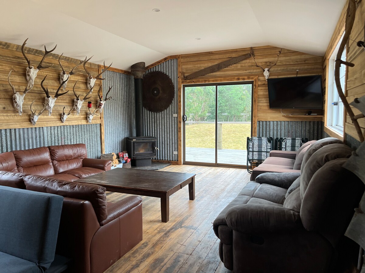 Take it easy at this unique and tranquil getaway. Treventy Hut is a place where you can truly unwind—waking to the peaceful sounds of birdsong, rustling trees, and the nearby river. There’s no TV or Wi-Fi, so you can slow down and reconnect. If you require more guests please get in contact Enjoy a leisurely walk and keep an eye out for local wildlife—we often spot platypus, deer, and kangaroos. Start your morning with a cuppa on the deck off the lounge room, overlooking the working farm.