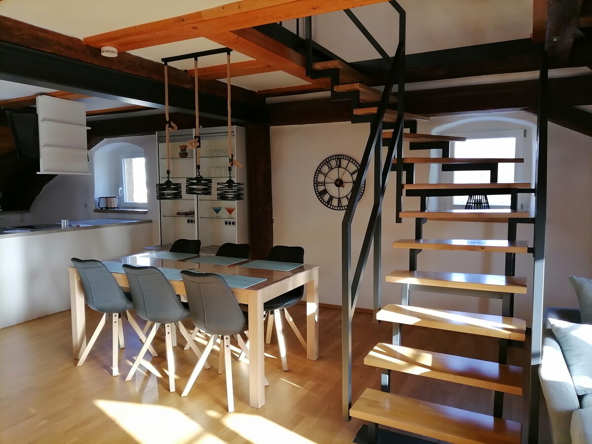 Apartemen ini berlokasi di pusat kota – cukup berjalan kaki ke restoran, kafe, dan pusat perbelanjaan. Apartemen bangunan tua yang telah direnovasi berkualitas tinggi ini menawarkan dua kamar tidur dan tempat tidur sofa untuk hingga 6 orang. Sorotan adalah dapur desainer baru, ruang sauna pribadi, gym, wifi, TV layar datar, dan mesin cuci. Lingkungan sekitar: Stasiun kereta api/Zob 400 m, garasi parkir Marktplatz 60 m. Check-in fleksibel mulai pukul 15.00 melalui kotak kunci.