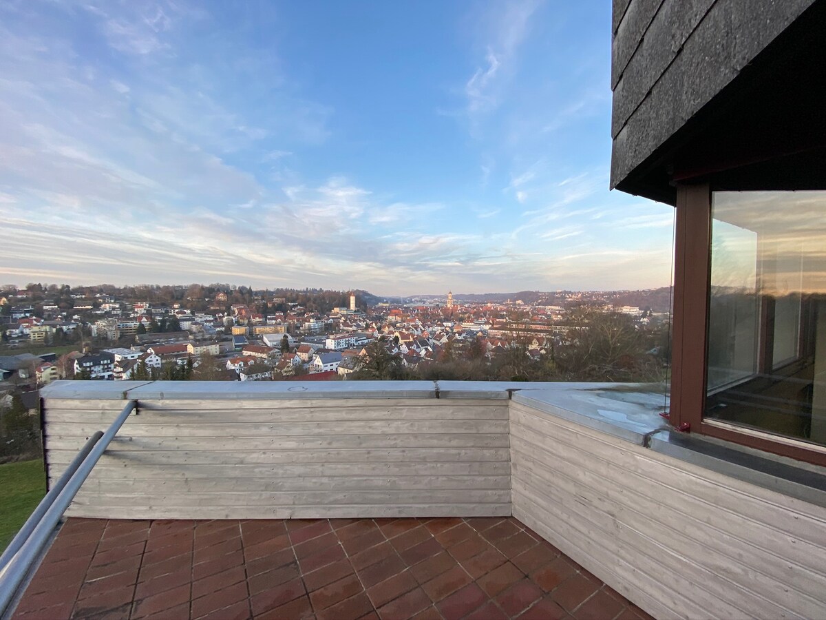 Apartemen lantai dasar yang tenang di rumah besar yang terpisah dengan pintu masuk terpisah dan parkir pribadi. Studio besar dengan tempat tidur ganda , sofa , kursi berlengan, TV, WIFI, pilihan DVD dan buku ditambah meja kerja kecil. Dapur dan kamar mandi terpisah. Tersedia kursi tinggi dan tempat tidur bayi tersedia atas permintaan. Restoran Italia, toko roti, apotek, dan supermarket bisa ditempuh dengan berjalan kaki. Sepeda pria tersedia untuk disewa. Layanan bus lokal ke Biberach (Jalur 2)