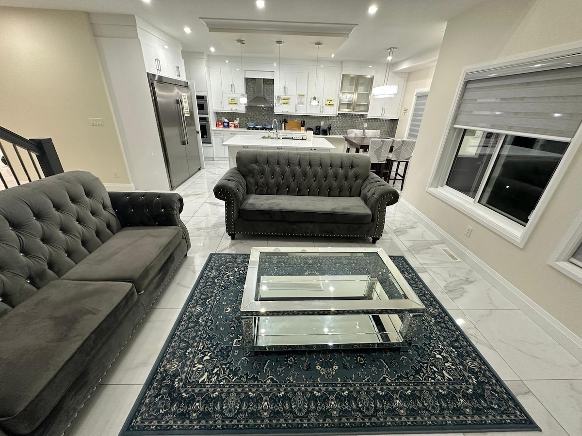 Bersenang - senanglah bersama seluruh keluarga di tempat bergaya ini. Kami menyediakan dapur lengkap, pengaturan tempat tidur yang nyaman, dan suasana yang tenang. Area keluarga menyediakan sofa yang nyaman untuk duduk dan menonton TV 85 inci besar dan meja foosball untuk bermain dengan anak-anak. Dapur menyediakan kompor, microwave, kulkas, dan mesin pembuat kopi. Kami juga menyediakan mesin cuci pengering untuk cucian . Tempat kami memiliki dua kamar tidur berukuran baik dengan tempat tidur queen size dan kasur ekstra untuk tamu tambahan.