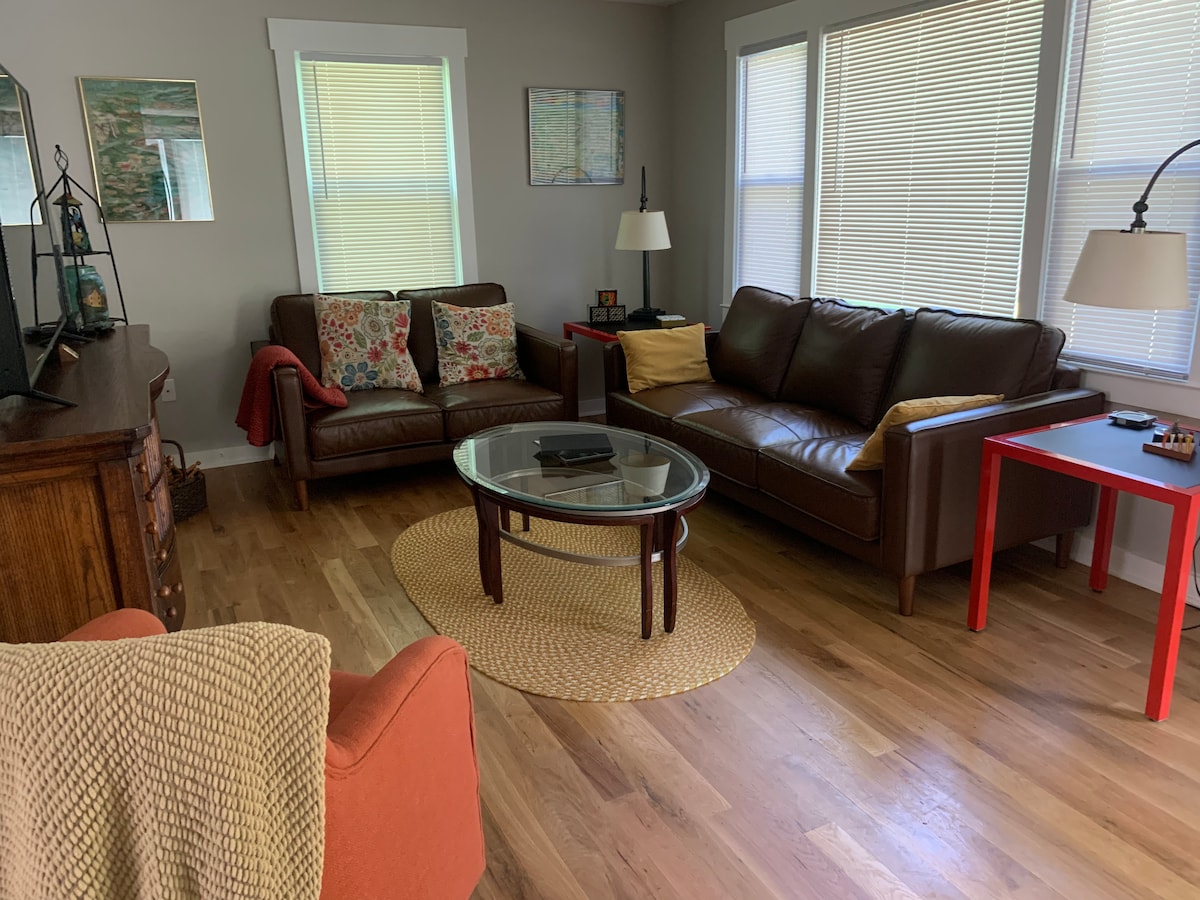 Cottage berukuran studio di W Hendersonville yang bersejarah dengan tema kunang-kunang, satu blok ke Ecusta Trail. Terpisah tetapi di sebelah rumah saya (tidak ada dinding bersama). Terdiri dari kamar tidur besar & kamar mandi dengan bak mandi/shower. Di dalam kamar tidur terdapat area "dapur kecil" dengan kulkas mini, microwave, oven pemanggang roti & keurig. Ada juga tempat duduk untuk bersantai dan menonton TV. Tempat tidur queen memiliki kasur medium firm yang nyaman dan seprai katun yang bagus. Halaman belakang pribadi yang indah dengan pemanggang. Lihat info lebih lengkap di keterangan foto.