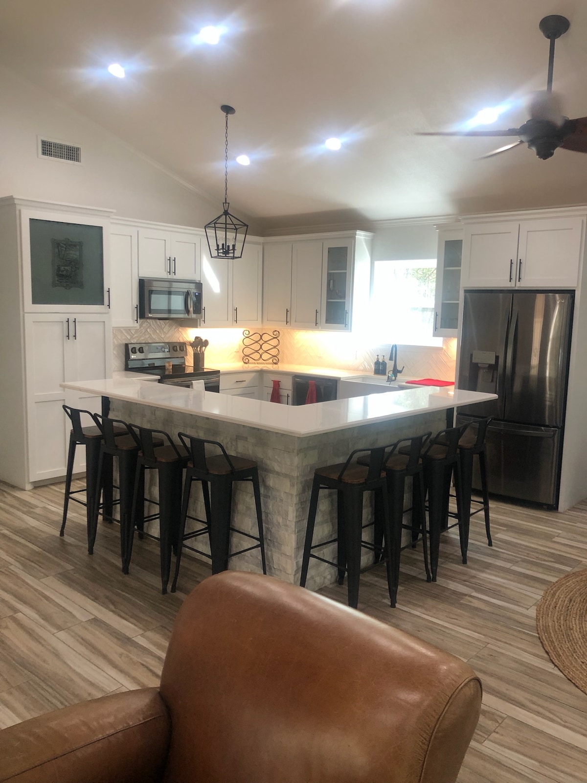 Relax and recharge in this cozy, simplistic space. 3-Thirteen is: > A cozy 1,077 square foot home > A 2-bedroom with one king bed & two twins > A 2-bath > Remodeled > Newly furnished You’ll be met with a sectional sofa, oversized rocker, and Smart TV. Access to fiber WiFi, a full kitchen with single Keurig, dinnerware, utensils, cookware, Tub/shower combo’s with towels, soap, shampoo/conditioner, CA/CH, ceiling fans, extra blankets, side and rear privacy fence, and front & rear patios.