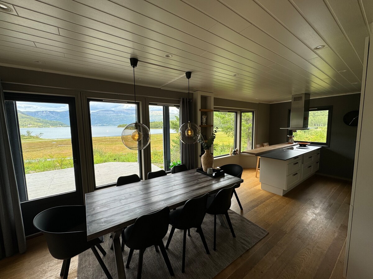 Di Norwegia utara yang indah, Anda akan menemukan kabin kami yang indah dengan pemandangan menakjubkan di Lavangen Fjord. Rumah ini dilengkapi dengan - 4 kamar tidur - 2 Kamar mandi - teras depan yang luas dengan pemandangan indah ke arah Fjord - Sauna - perapian yang nyaman - Dapur lengkap Di musim panas, Anda bisa pergi hiking di pegunungan sekitar, memancing, menyaksikan lumba-lumba dan elang atau hanya menikmati matahari tengah malam. Di musim dingin, Anda bisa mengagumi Northern Lights, bermain ski, atau sepatu salju.