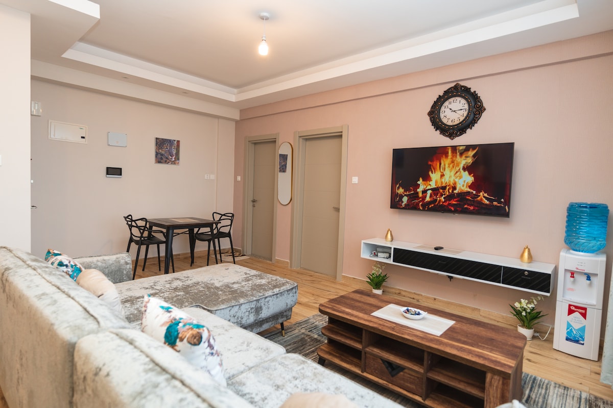Bersantai di tempat unik dan damai 1 tempat tidur ini. Ini adalah apartemen 1 tempat tidur baru; bersih dengan tempat tidur queen. Dilengkapi dengan pancuran air panas yang sangat baik, sofa modern yang nyaman, dan internet kecepatan tinggi. Anda akan menemukan dapur lengkap, konsep minimalis, dan pemandangan kota yang mengagumkan. Tempat ini memiliki generator cadangan penuh, kolam renang yang hangat, pusat kebugaran canggih, dan area bermain anak-anak. Lokasi juga sangat baik dengan transportasi gratis.
