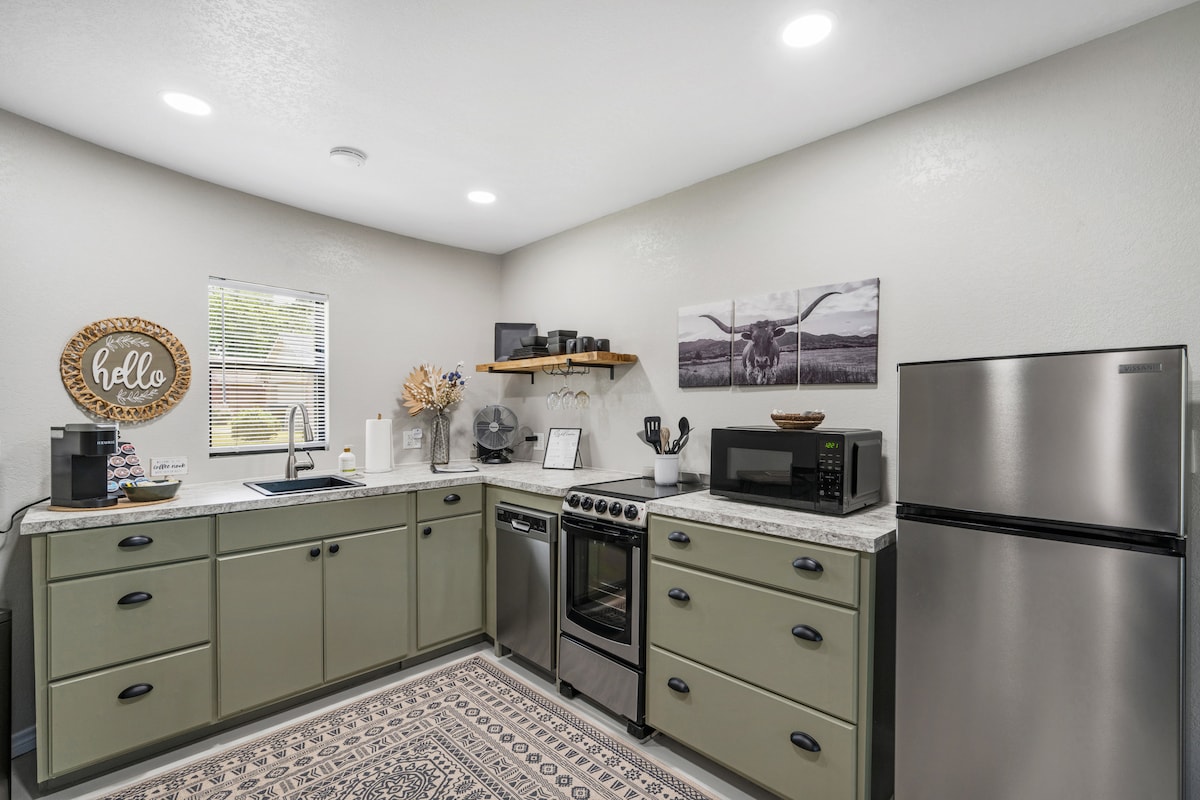 Rumah satu kamar tidur baru ini menawarkan perpaduan sempurna antara kenyamanan modern dan pesona pedesaan. Terletak di lahan yang tenang bersama dua ekor sapi yang ramah yang bisa Anda beri makan, tempat ini adalah tempat ideal untuk menginap santai dengan sentuhan kehidupan pertanian. Nikmati pagi yang tenang, langit terbuka, dan kehadiran alam yang menenangkan—semuanya hanya 5 menit dari pusat perbelanjaan, restoran, dan kebutuhan dasar. Baik Anda mengunjungi keluarga, menjelajahi area ini, atau ditempatkan di dekatnya, Ft. Sill Army Base hanya berjarak 15 menit berkendara.