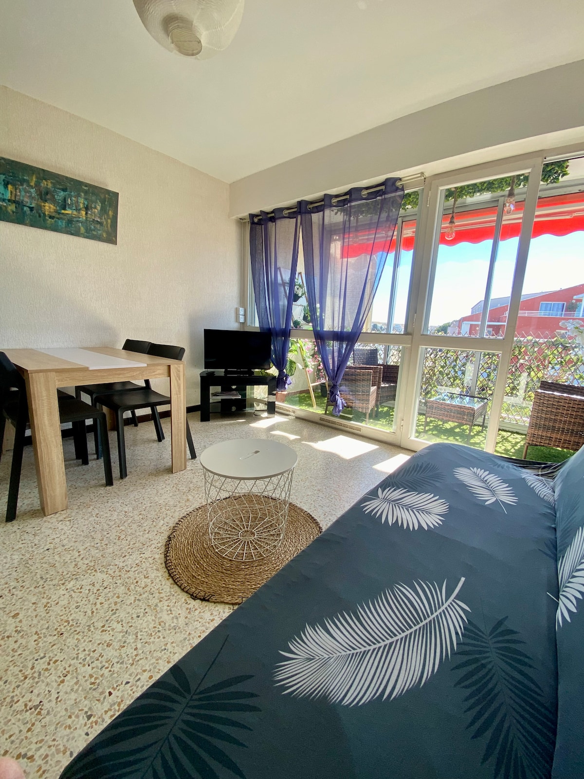 ✨ Apartemen menawan satu kamar tidur dengan teras, dekat pantai ✨ Apartemen yang terang dan nyaman ini terdiri dari kamar tidur dengan tempat tidur ganda, ruang tamu dengan sofa bed, dapur lengkap, dan kamar mandi.Nikmati teras untuk momen relaksasi Anda.Terletak 10 menit dari pantai dan pertokoan, dengan tempat parkir tersedia.👶 Perlengkapan bayi tersedia (tempat tidur bayi portabel dan kursi makan bayi). 🛏️ Perlengkapan tempat tidur disediakan: seprai dan handuk sudah termasuk. Ideal untuk menginap dengan nyaman dan tenang.