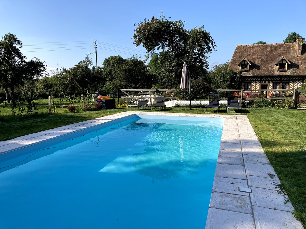 Kamar tamu romantis kami untuk dua orang adalah tempat relaksasi yang autentik. Terletak di pedesaan dekat laut, 10 menit dari Le Havre, 25 menit dari Honfleur atau Etretat, pesona kamar tamu kami mengundang Anda untuk merasakan manisnya Normandy. Nikmati malam yang damai di SUITE PRIBADI seluas 35m² ini dengan dekorasi yang halus dan kamar mandi dengan bak mandi untuk dua orang. Bersantai sepanjang tahun di bak mandi air panas Nordic kami. Di musim panas, nikmati kolam air asin 10m x 5m kami.
