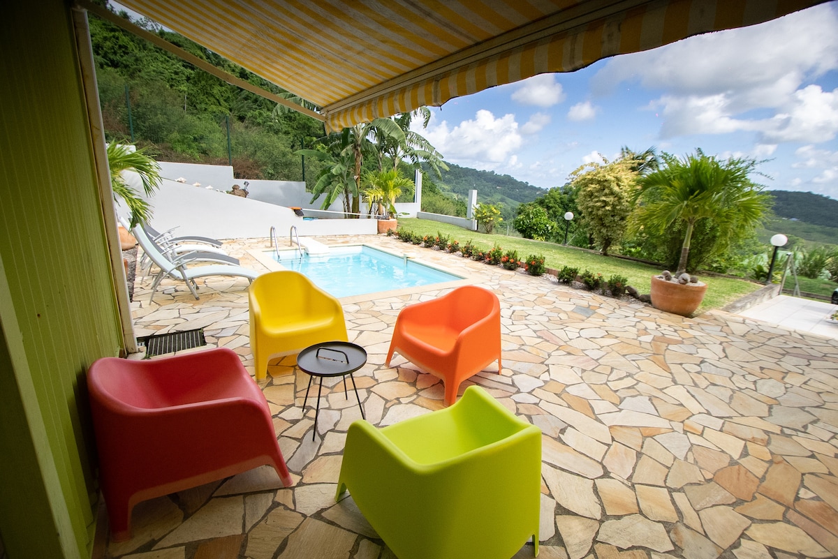 Dibuai oleh kehidupan Île aux Fleurs yang lembut (penyebutan khusus untuk kolam renang pribadi di taman tropis yang indah ini). Bungalo seluas 36 m2 yang menawarkan kenyamanan dan AC ini merupakan tempat singgah yang damai. Terletak di ketinggian , di surga kedamaian dekat teluk berwarna pirus Marin dan pantai - pantai terindah, temukan Martinique dengan cara yang berbeda... Ronald juga seorang Pilot Pribadi. Jelajahi pulau ini dan pantai - pantainya yang indah dari atas dalam penerbangan bersamanya dengan pesawat turis.