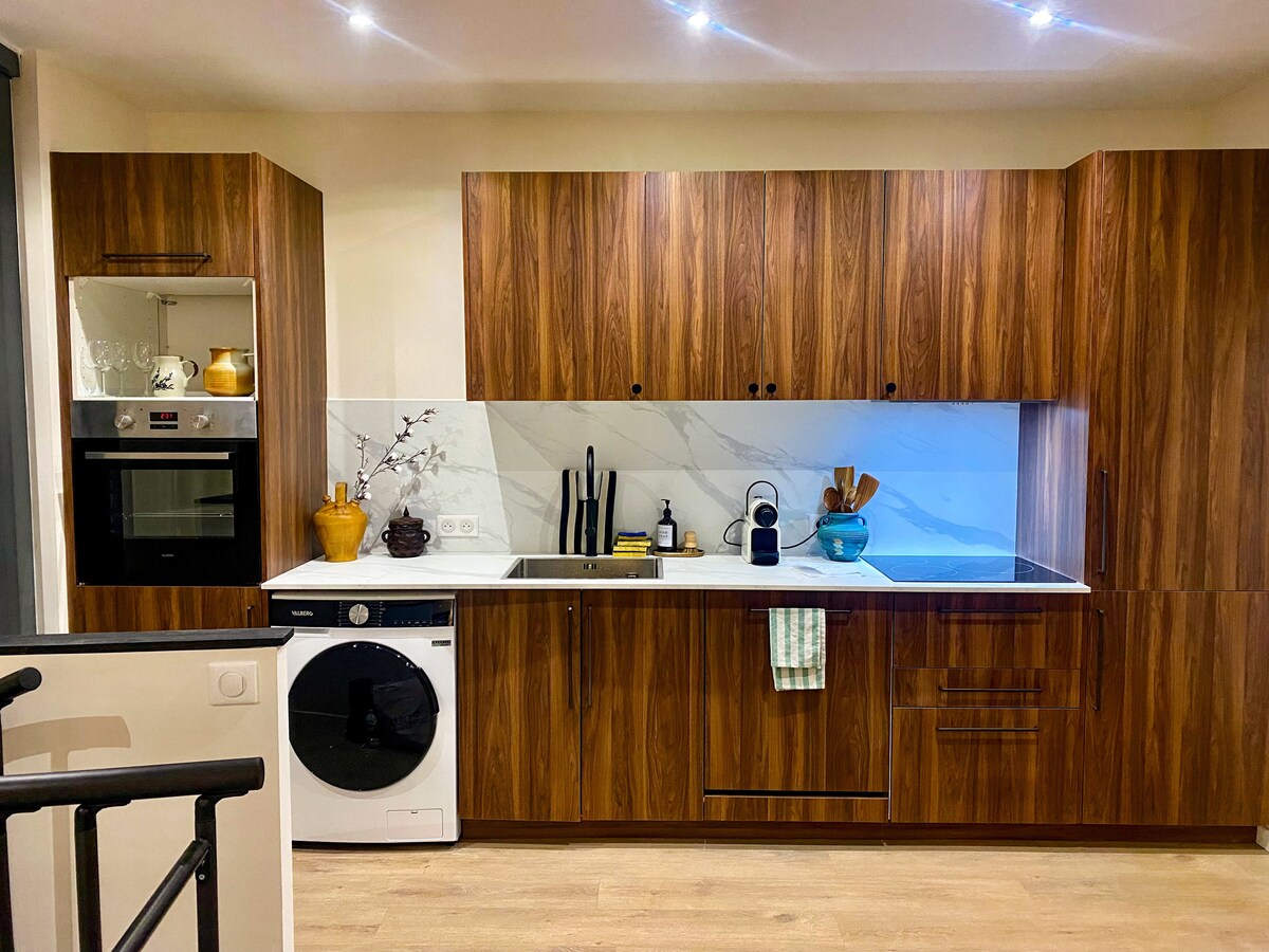 Selamat datang di kepompong agenais Anda! Studio ini, yang berlokasi di lantai dua, benar-benar dirancang ulang dan direnovasi dengan hati-hati, menawarkan ruang modern, nyaman, dan hangat, ideal untuk liburan atau perjalanan bisnis. Anda akan menemukan dapur baru yang lengkap, area tidur yang nyaman untuk beristirahat dengan tenang, dan kamar mandi elegan dengan gaya minimalis. Lokasi ideal untuk memanfaatkan kota sepenuhnya sambil menikmati ketenangan lingkungan tinggal ini.