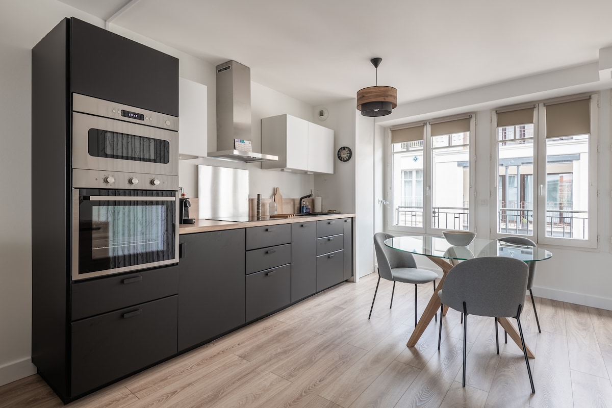 Apartemen abad ke -18 di area Sainte Croix & Saint Michel di alun - alun yang tenang. 3 menit dari tepi sungai, lima menit dari Saint Michel Tram C & D. Pemandangan Hôtel de la Monnaie dan menara Saint Michel. 70 m2 baru - baru ini direnovasi dengan perabotan antik memberikan pengalaman Bordeaux modern - autentik. Dapur lengkap, ruang tamu dan ruang makan besar, tempat tidur berkualitas tinggi, kamar mandi luas dengan bak mandi dan pancuran, WiFi gratis, TV, Blu - ray, dan mesin espresso.