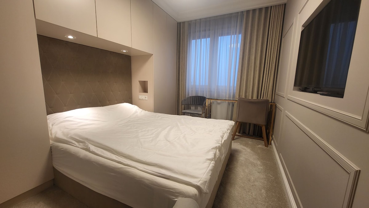 Witaj w naszym nowym, spójnie zaprojektowanym apartamencie, stworzonym z myślą o najwyższym komforcie i relaksie. Ten stylowy obiekt wyróżnia się ciepłym, nastrojowym oświetleniem oraz dbałością o każdy detal, co widać w sypialni i eleganckim salonie z wygodną sofą i szklanym stołem, idealnym do pracy lub kolacji. Gotowy na rezerwację? Sprawdź dostępność i zaplanuj swój komfortowy pobyt.