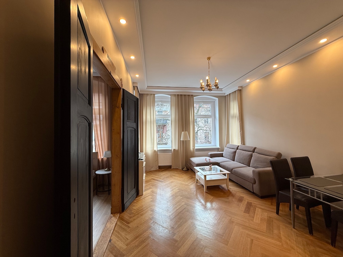 Apartemen yang luas ini terletak di townhouse yang indah dan terawat yang membuat kesan dari pintu masuk dan memperkenalkan suasana yang tenang dan ramah. Langit - langit tinggi, jendela besar, dan tata letak yang apik membuat interiornya cerah, nyaman, dan benar - benar bernapas. Terletak di lokasi yang luar biasa – dekat dengan pusat kota, namun di daerah yang sangat tenang – memberikan keseimbangan sempurna antara kenyamanan dan ketenangan. Semua yang Anda butuhkan ada di ujung jari Anda, namun tanpa hiruk pikuk di luar jendela.