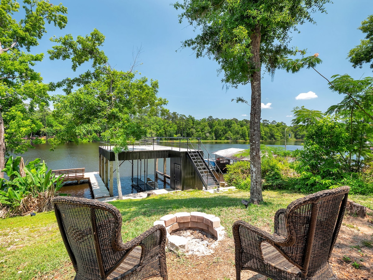 ➔ 2 Kayak tandem gratis dengan dayung ➔ Dek dengan furnitur teras, perapian propana, dan pemanggang arang Dermaga ➔ double decker dengan pemandangan danau 180° ➔ Dapur lengkap dengan bar kopi ➔ TV dengan Roku Lubang api➔ kayu Internet ➔ berkecepatan tinggi - 1000 mbps ➔ Banyak tempat parkir untuk kendaraan dan trailer perahu Anda Lingkungan tinggal yang➔ aman dan tenang ➤ 3 mnt ke Blount Landing ➤ 25 menit ke Stadion Doak Campbell. ➤ 30 menit ke Donald L. Tucker Civic Center.