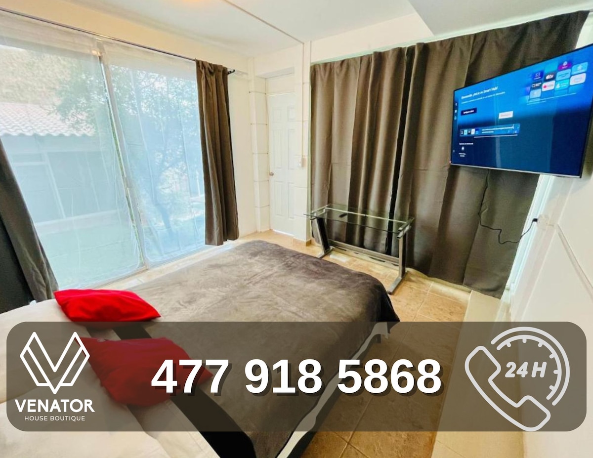 Te va a encantar hospedarte en este espacio independiente de 2 habitaciones y un baño completo en una zona privilegiada y segura a 5 min en auto de Poliforum en zona de cafeterías, gimnasios, restaurantes de buen nivel centro Histórico Habitación 1 : 1 Cama Queen Habitación 2 : 1 cama individual, 1 cama Matrimonial un sofacama 10 pm -7am es zona de silencio para comodidad de los vecinos Hermosa zona residencial ideal para caminar Estamos muy cerca de Poliforum y Foro Mazda de conciertos