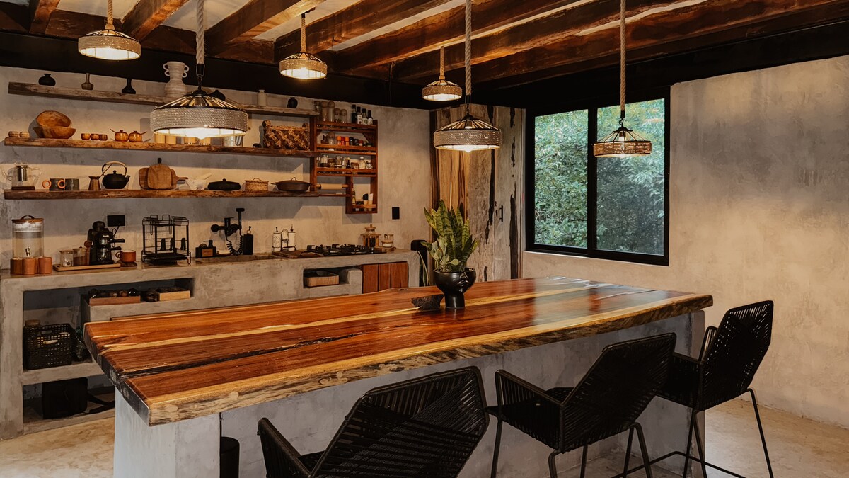 🌿 Desa ajaib di hutan Maya hanya 6 menit dari pantai (1,5 km). Dibuat dengan bahan dari wilayah ini dan dirancang untuk pencinta alam sejati. Bangun dengan suara kicauan burung dan tinggallah di antara flora dan fauna lokal: opossum, coatis, kadal, dan serangga. Bebas dari pesta, alkohol dan rokok, tempat ini adalah tempat berlindung untuk memutuskan hubungan dan kembali terhubung dengan diri sendiri. Pengalaman unik, berbeda dari yang konvensional. ✨