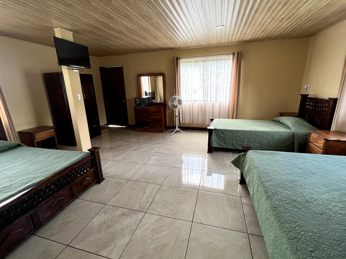 Selamat datang di liburan Kosta Rika ajaib Anda! Pemandangan panorama kami yang luar biasa akan membuat Anda terengah – engah – nikmati warna indah matahari terbit dan terbenam kami, kagumi langit malam yang mempesona, dan temukan keajaiban keanekaragaman hayati hutan hujan. Masa inap di kabin kami yang nyaman mencakup fitur & fasilitas berikut: ✔ 3 tempat tidur (menyediakan hingga 4 tamu) ✔ 1 kamar mandi pribadi ✔ Dapur lengkap ✔ Pemandangan panorama luar biasa ✔ Kolam renang, kebun, dan hutan hujan Parkir✔ gratis