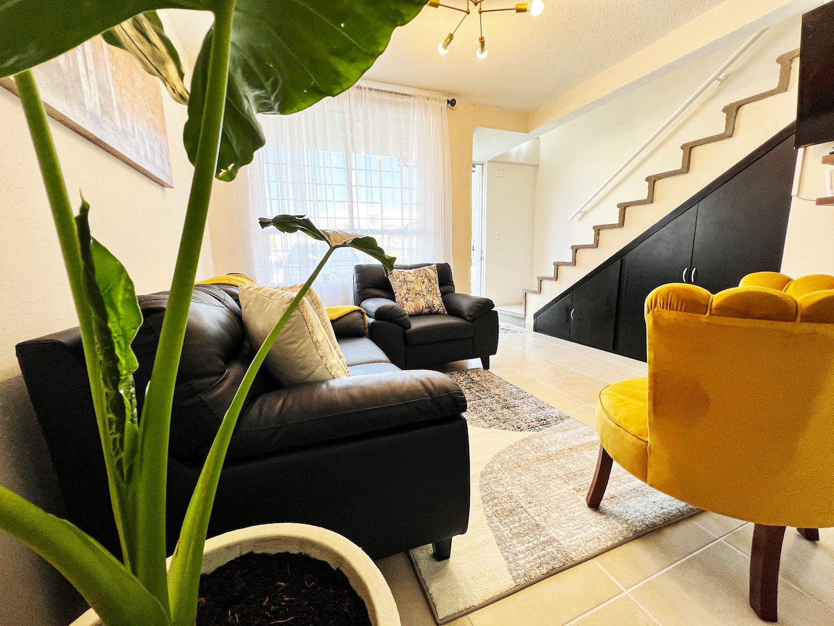 Apartemen modern dan sepenuhnya mandiri, terletak hanya 7 menit dari Bandara Internasional Toluca dan dekat dengan kawasan industri. Cocok untuk wisatawan, beristirahat, atau menginap untuk bekerja. Tempat ini memiliki dua kamar tidur dengan tempat tidur ganda dan lemari, kamar mandi lengkap, ruang tamu dengan TV, ruang kerja yang sempurna untuk bekerja, ruang makan, dan dapur lengkap dengan kulkas, microwave, blender, dan pembuat kopi. Garasi untuk satu kendaraan. Semua siap untuk membuat Anda merasa seperti di rumah!