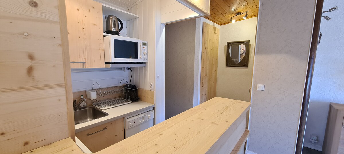Apartemen seluas 28m2 direnovasi seluruhnya. Tempat ini memiliki kamar tidur ganda (140/200) dengan ruang penyimpanan. Ruang tamu memiliki sofa nyaman (yang bisa diubah menjadi tempat tidur twin), TV, WIFI internet. Dapur dilengkapi dengan satu microwave, mesin cuci piring, kulkas, keramik vitreous tongkat, dan kompor listrik. Seprai dan handuk disertakan untuk musim dingin (untuk masa inap lebih dari 3 malam dan € 10/orang untuk musim panas dan masa inap celana pendek). Sepeda tidak diterima di apartemen ini.